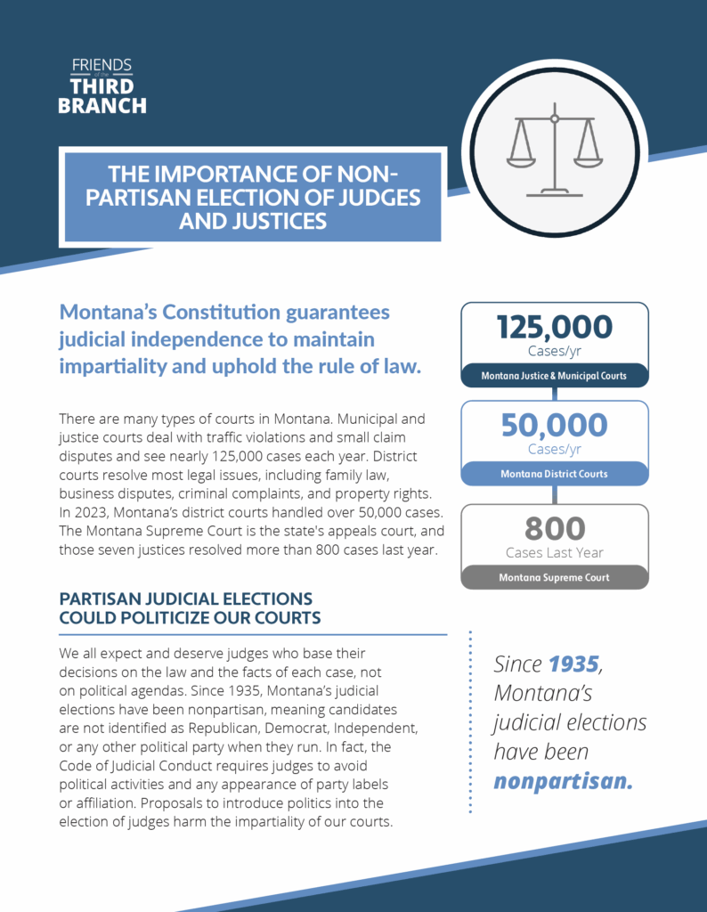 Our fact sheet explains why non-partisan elections of judges and justices are critical and outlines why proposals to introduce politics into the judicial election process harm the impartiality of our courts.